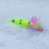 A ultra bright Redfish Crack style bug tied by Bryce Overholt