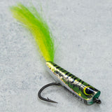 With its holographic reflective finish and swimming action, the Spratz fly makes a commotion which attracts and triggers feeding gamefish to strike. Almost any top-feeding gamefish such as Mahi, Stripers, bluefish, false albacore, and a host of other species like jacks, and small tunas will attack these flies!
