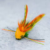A beautiful and insanely productive deer hair frog pattern by the legend Dave Whitlock. The diving action pushes a lot of water and makes this irresistible to bass.