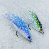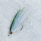 Extra flashy baitfish that demands attention. Durable synthetic fibers and a fish mask that will take a beating.