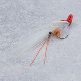 Top water shrimp pattern . Perfect shrimp fly to throw on the flats or over coral or heavy grass. Tied with white fiber with orange hot spot. Tarpon and Snook love them!