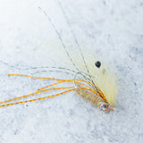 Weighted that produces in a variety of conditions from Bonefish on tropical flats to tailing skinny water Redfish . Mono eyes double as a weedguard. Extra legs for action.