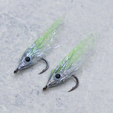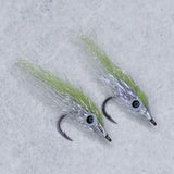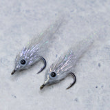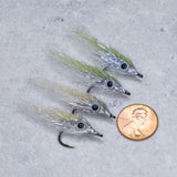 Small bait fish pattern with translucent look when wet. Throw it in the dock lights and in the mangroves!