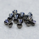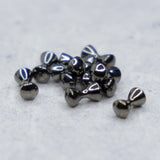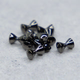 Solid brass dumbbell eyes with black nickel anodized coating.