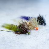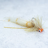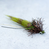 A SCF original pattern with great movement even when sitting still. Medium lead eyes for enough weight to swim hook point up. Double weed guard as well to keep debris from snagging . Original design for Redfish and Black Drum in mosquito lagoon but found to have large success across many species and places.