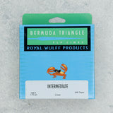 The Bermuda Triangle Tapers Intermediate fly line is built to withstand the wilting heat of tropical flats and blistering decks, this line will continue to cast like a rocket when the others have folded up. That’s because we build it around a special 16 strand braided monofilament core that stays stiff to deliver blazing casts – even in blazing heat. The finish is also harder and slicker than our regular saltwater lines, with a slightly bumpy texture that helps facilitate longer casts. Features a tip that can be customized. The lighter, neutral colors “disappear” into the sea and sky for added stealth. Works best above 70 degrees Fahrenheit but can also be used at lower temperatures. 105’ length, with a 30’ taper, and a 75’ running line.