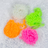 A small cactus chenille that glows in the dark when charged with a flashlight or UV light. Great for low light or night fishing.