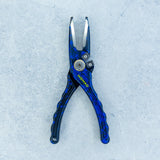 The design of our ever popular Nomad pliers creates exciting options for the avid angler. Utilizing Tungsten Carbide cutters in a side cutting position makes reliable cuts through all fishing line material easier than ever. Gripping grooves added to the jaw tips easily grasp knot tag ends for ideal rigging. The I-Beam arms are crafted from 6061-T6 Aluminum and protected with Type II anodize.